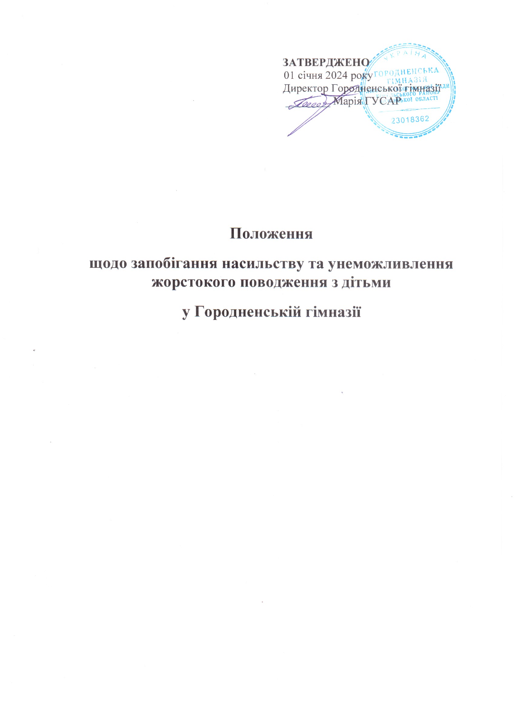 4.2.Працівники гімназії, у разі виявлення ознак насильства або жорстокого поводження з дитиною зобов’язані: